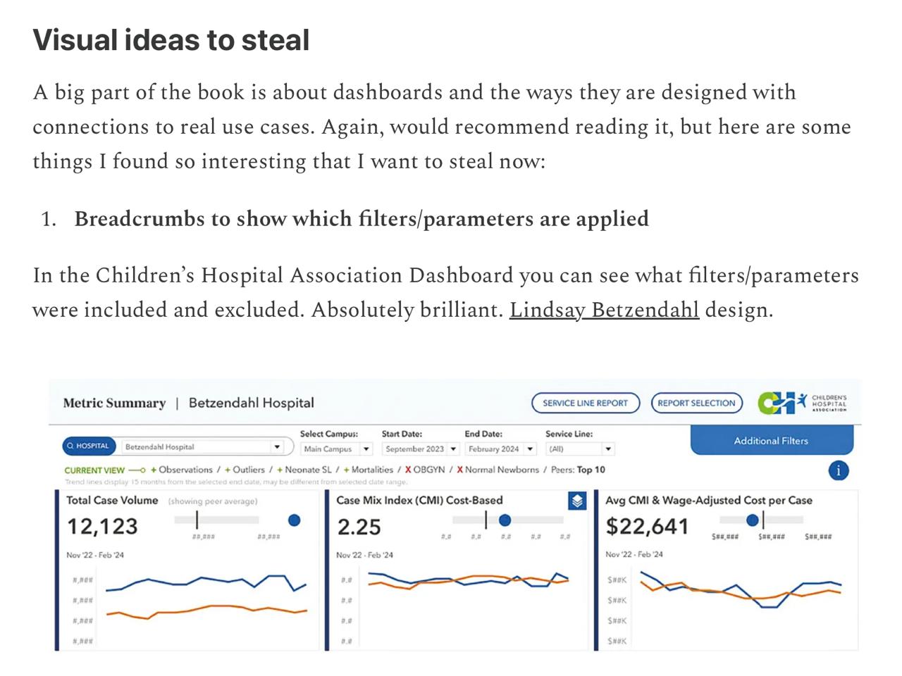 Storytelling with Data shares a practical redesign approach for bullet heavy slides and dashboards that overwhelm readers. The post focuses on turning dense, multi level bullet lists into scannable communication using intentional hierarchy, whitespace, grouping, and emphasis. It likely demonstrates before and after examples, shows how to keep one idea per line, and recommends alternatives like short labeled sections, callouts, or visual structure instead of long bullets.